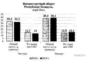 1) В 2019 г. на территорию Республики Беларусь всего из-за границы ввезено товаров на сумму меньше, чем в 2018 г.